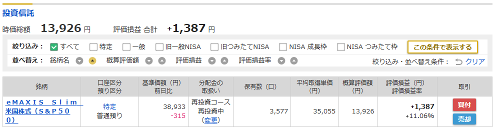 eMAXIS Slim 米国株式(S&P500)